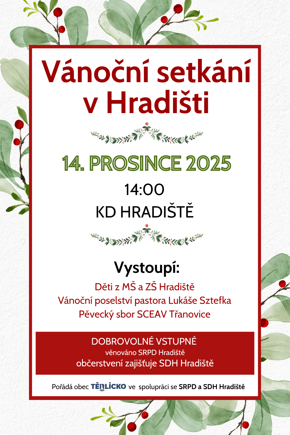 Zpravodaj Pozvánky na akce Upozornění Pozvánky na akce v okolí Ztráty a nálezy Volná pracovní místa Volby křesťanství Kino Ostatní Životní prostředí Akce pro děti Sport Hasiči Spolky Zobrazit více